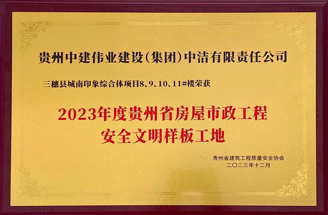 近日,由貴州中建偉業(yè)建設(shè)(集團(tuán))中潔有限責(zé)任公司承建的三穗縣城南印象綜合體項(xiàng)目8#9#10#11#樓,被貴州省建筑工程質(zhì)量安全協(xié)會評為“2023年度貴州省房屋市政工程安全文明樣板工地”;三穗縣城南印象綜合體項(xiàng)目8#樓被評為“2023年度貴州省建筑工程優(yōu)質(zhì)質(zhì)量結(jié)構(gòu)工程”。