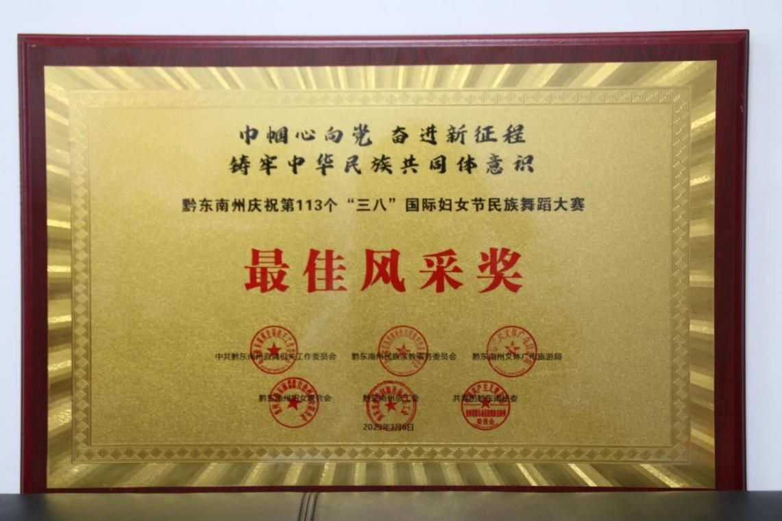 3月6日,黔東南州婦聯(lián)聯(lián)合州直機(jī)關(guān)工委、州民宗委、州文體廣電旅游局、州總工會、團(tuán)州委共同舉辦的“巾幗心向黨 奮進(jìn)新征程 鑄牢中華民族共同體意識”民族舞蹈大賽在凱里市下司鎮(zhèn)舉行,集團(tuán)工會積極組建舞蹈隊(duì)參加比賽,榮獲最佳風(fēng)采獎。