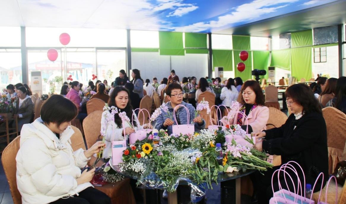 在大片鮮花中,女職工們在花藝?yán)蠋煹闹笇?dǎo)下,一邊擺弄著花材一邊進(jìn)行構(gòu)思,充分發(fā)揮自己的聰明才智,用自己靈巧的雙擁,將原本普通的花草修剪、整枝、扦插成各種造型。經(jīng)過一個(gè)多小時(shí)的創(chuàng)作,一籃籃燦爛繽紛、新穎別致的插花作品新鮮出爐,是廣大女職工送給自己的第一份節(jié)日禮物。不少女職工都表示,這次插花活動別具一格,生動有趣,大家既輕松又開心。今天是收獲的一天,也是幸福的一天!